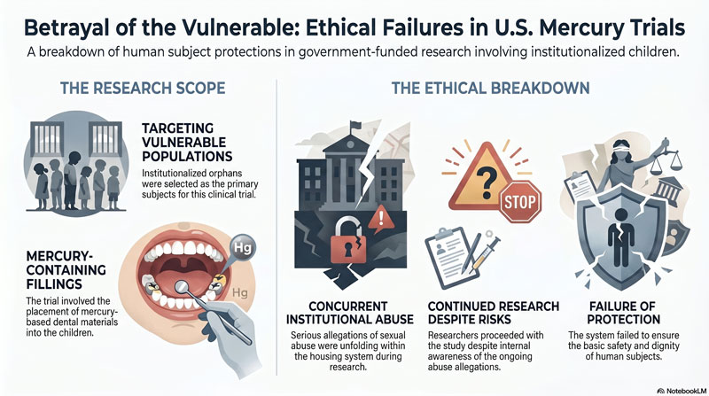 A U.S. government-funded clinical trial placed mercury-containing dental fillings into vulnerable children—many of them institutionalized orphans—while serious allegations of sexual abuse were unfolding within the very system that housed them. Despite mounting evidence of abuse and internal awareness among researchers, the study continued, raising profound questions about whether these children were ever truly protected as human subjects.